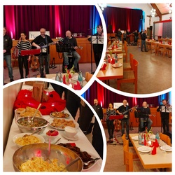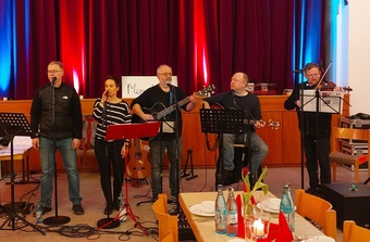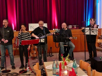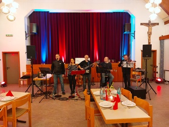 Für die musikalische Begleitung sorgte die Momentmal-Band aus Aschaffenburg um Burkard Vogt. Mit ihren gefühlvollen Eigenkompositionen und Texten aus der Kolumne Momentmal des MAIN-ECHO schuf sie eine romantische Atmosphäre. Ergänzt wurde das Programm durch inspirierende Impulse von Ehe- und Familienseelsorger Thorsten Seipel und Walter Lang, die die Paare zum Nachdenken und zum offenen Gespräch anregten.
