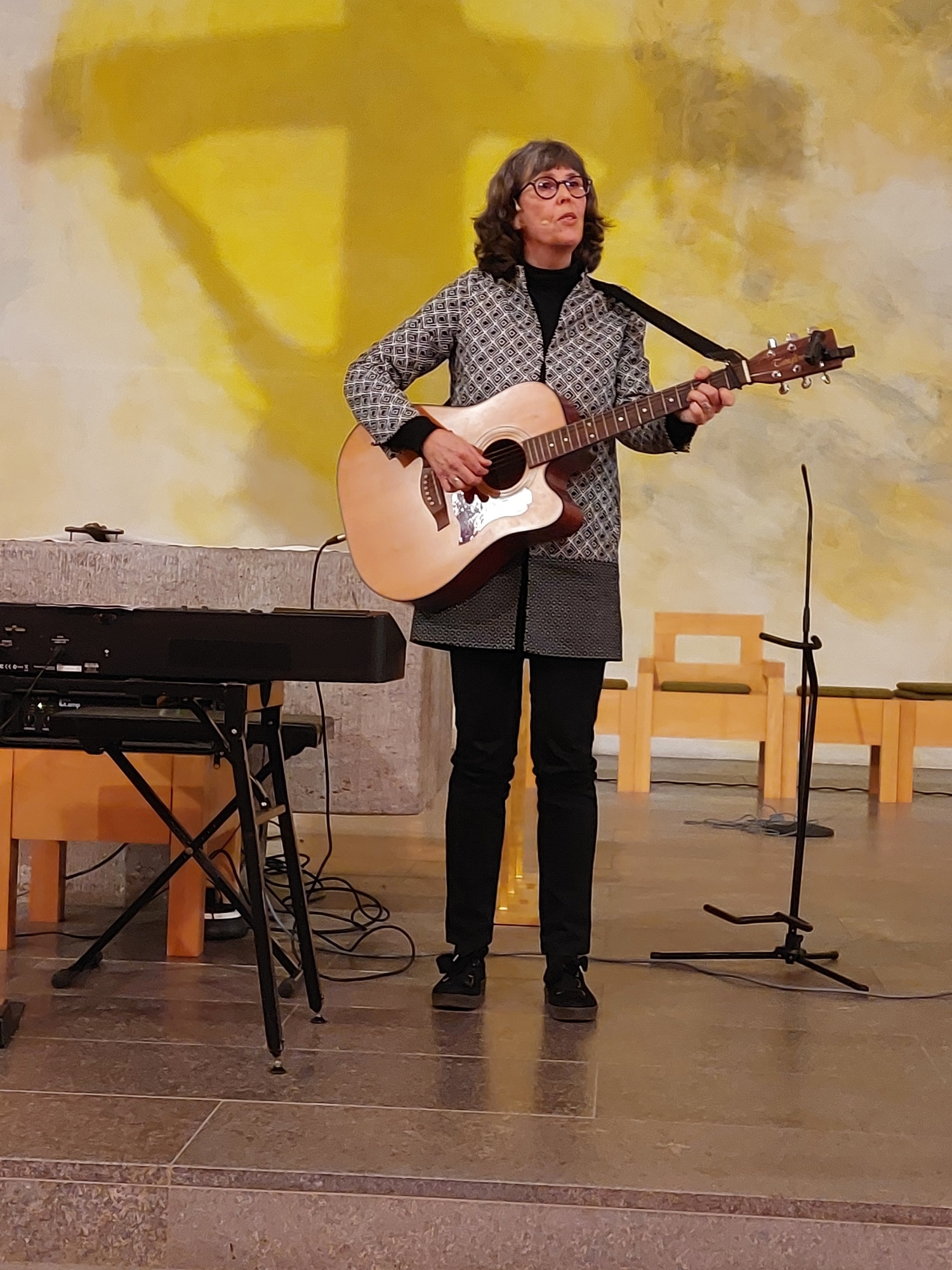Mömbris-Schimborn. Über 90 Besucherinnern und Besucher kamen zum besonderen Abendgottesdienst im Kahlgrund in die neue Kirche in Schimborn, um mit dem Team der "Zeit für uns" und der Liedermacherin Stefanie Schwab aus Würzburg gemeinsam eine musikalische Adventsandacht zu erleben. Unter der Überschrift "MENSCH-Werdung" hatte die Liedermacherin ihre Lieder und Texte ausgewählt. Dabei standen Gedanken im Vordergrund, die anregten das Mensch-Sein Jesu Christi in den Blick zu nehmen. Sein Weg und seine Botschaft für die Menschen von heute wurden ihr konkret übersetzt in die Begegnung mit einem Obdachlosen und der Sehnsucht gerade heute nach Frieden unter den Menschen. Die Liedermacherin arbeitet ehrenamtlich in der Bahnhofsmission und bat aus diesem Anlass und aus den Begegnungen mit den Menschen dort um Spenden am Ende dieser besonderen Andacht. Durch die Teilnehmenden gingen so 600 € an die Bahnhofsmission in Würzburg.Pastoralreferent Walter Lang bedankte sich am Ende für ihr authentisches Zeugnis des gelebten Christseins in Liedern und Erfahrung. Die nächste "Zeit für uns" startet im neuen Jahr am 12.1.2025 wieder in der neuen Kirche in Mömbris-Schimborn. Alle Informationen unter www.zeitfueruns.de