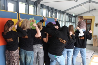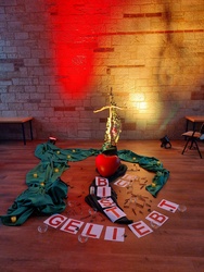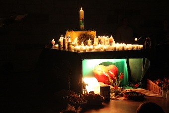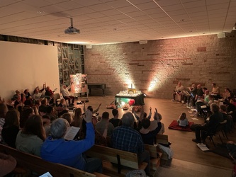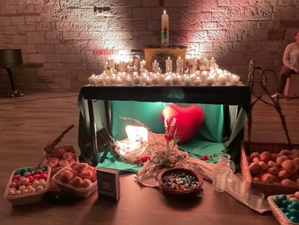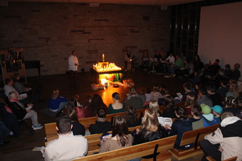 Der Karsamstag bot eine außergewöhnliche Erfahrung: Eine Zeitreise ins damalige Palästina. Auf einem belebten Marktplatz konnten die Teilnehmenden Osterkörbchen flechten, mit Gewürzen experimentieren oder bei den Jüngern am See Platz nehmen. Wer sich traute, ließ sich vom Hohen Rat befragen oder spürte bei Gesprächen mit den Jüngern am See, was Hoffnung heute heißen kann. Am Nachmittag wurde es konkret und kreativ: Es wurden Ostereier gefärbt, Osterbrot gebacken, Weidenherzen geflochten, bunte Gläser bemalt und Samenpapierchen gestaltet. Ein Lichtertanz wurde eingeübt – Ausdruck der aufkeimenden Osterfreude.