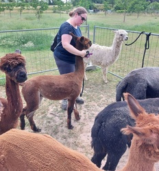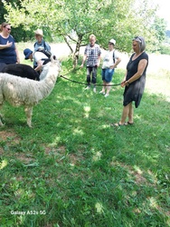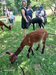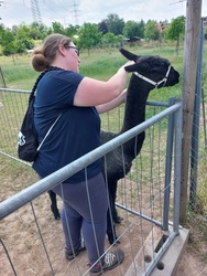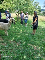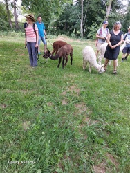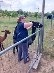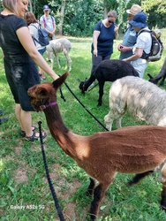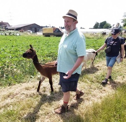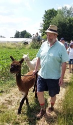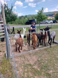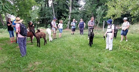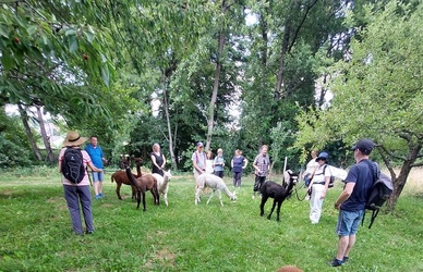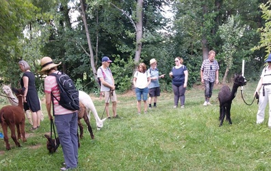 An diesem Nachmittag war es anders: Jedes Paar bekam ein gehalftertes Alpaka mit so netten Namen wie Henry, Rocco oder Bailey und konnte sich schon mal an einander gewöhnen, bevor es dann zur Wanderung entlang der Kahl losging. Kurze Impulse bei den Pausen während der Wanderung von Thorsten Seipel oder Walter Lang zum Erleben der Verantwortung für das Tier und gemeinsam unterwegs zu sein luden dann auch zum Austausch ein. Nach drei Stunden war die Gruppe mit einigen Erlebnissen wieder an der Koppel zurück und verabschiedete sich von ihrem Tier. "Das war ja wie eine Gehmeditation" fasste ein Teilnehmer den Nachmittag zusammen. Einhellig war der Eindruck, dass die Tiere eine große Ruhe ausstrahlen und keine hektischen Bewegungen mögen. Das hat sich auch auf die Paare übertragen. Teresa Stolzenberger lud ein gerne wieder vorbei zu kommen oder auf der Homepage https://hahnenkamm-alpakas.de/ nachzuschauen, welche Angebote es mit den Alpakas noch gibt. Ehe- und Familienseelsorger Thorsten Seipel verabschiedete die Paare mit einer Alpaka-Erinnerungskarte und machte auch auf die anderen Verranstaltungen im Rahmen der Aschaffenburger Paartage aufmerksam.