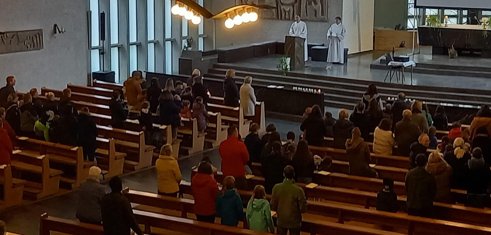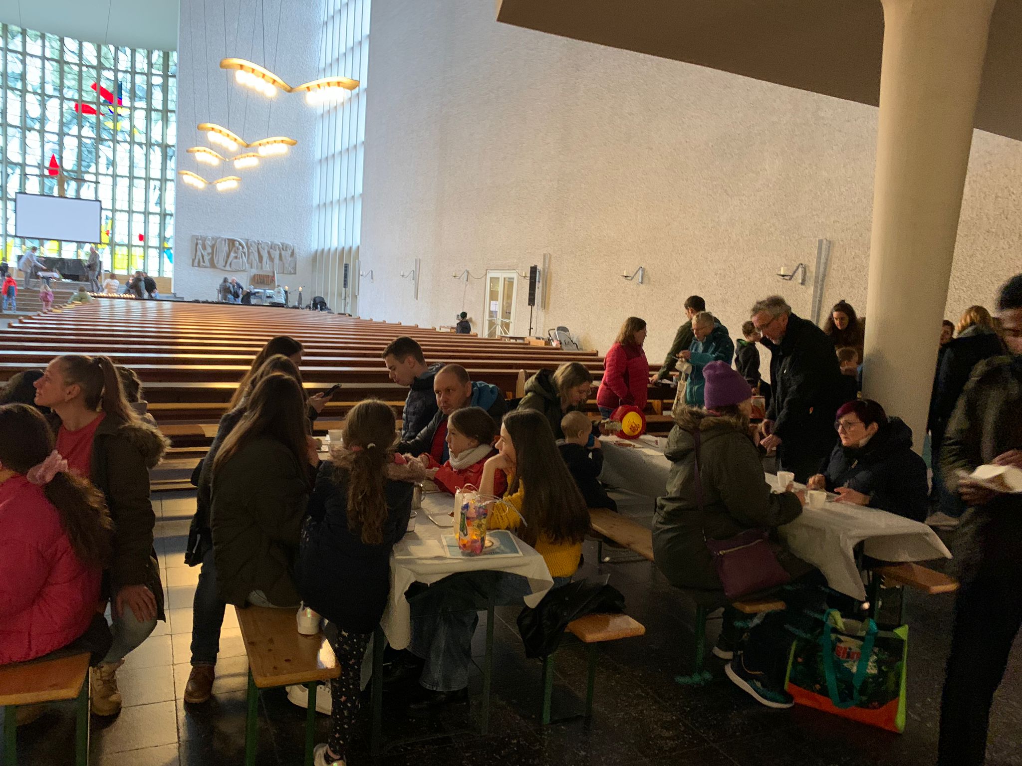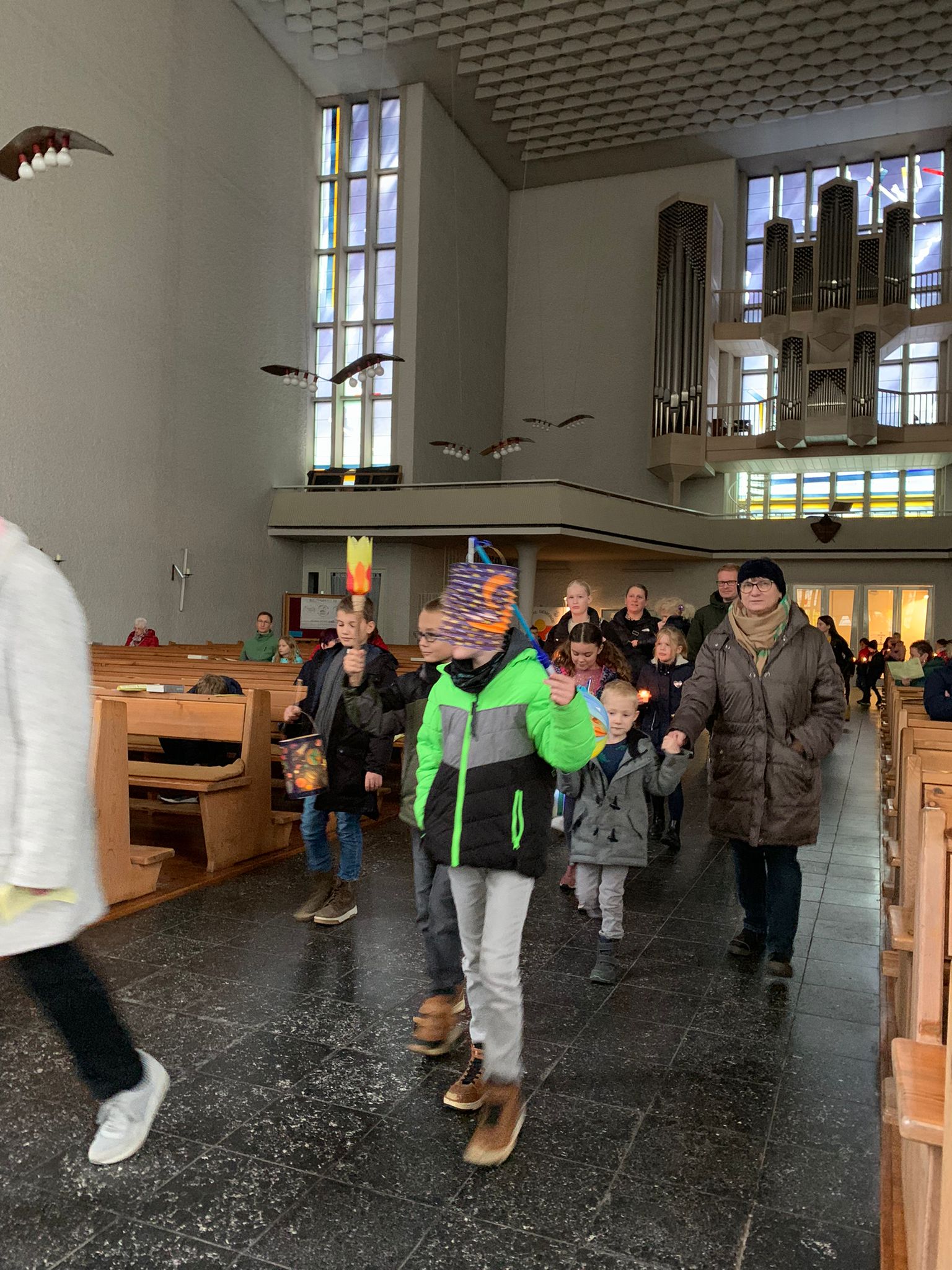 „Zünd ein Licht an!“ Unter diesem Motto stand ein Familiengottesdienst, der von der Gemeinde St. Kilian und der Ehe- und Familienseelsorge organisiert und gestaltet wurde. Darin stand der Heilige Martin im Mittelpunkt. Mehrere Dutzend Familien waren gekommen, um miteinander zu beten und zu singen. Für die Begleitung der Lieder sorgte die Band funtasy. Ein Schattenspiel legte die Geschichte des Heiligen Martin dar, „der so gelebt hat, dass die Menschen gespürt haben: Der liebt ja Gott und liebt seine Mitmenschen“, so Ehe- und Familienseelsorger Ullrich Göbel. Höhepunkt war, als die Familien mit brennenden Laternen durch die weite St. Kilian-Kirche zogen. Danach gab es für alle leckere Würstchen und Brot und einen Schokoriegel zum Teilen.