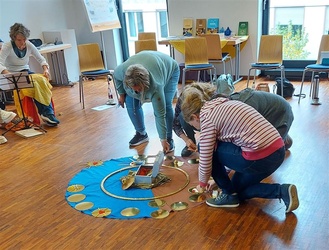 Aschaffenburg. Die Fachstelle Ehe- und Familienseelsorge am Untermain hat zu einem Schulungstag für Kinderliturgie ins Martinushaus eingeladen Über 30 Personen aus Kindertagesstätten und Kinderliturgie-Teams in den pastoralen Räumen folgten der Einladung ins Martinushaus. Dagmar Kretz, Erzieherin und Trainerin für Franz-Kett-Pädagogik GSEB (Ganzheitlich sinnorientiert Erziehen und Bilden), gestaltete den Tag mit vielen Elemente und Geschichte rund um das Thema "geschenkt!?". Es konnte viel selbst ausprobiert und für die verschiedensten Formen von liturgischen Angeboten mit kleinen und großen Kindern durchgesprochen werden. Der Ansatz geht immer von einer anthroplogischen Grunderfahrung aus und nimmt dann Bezug auf eine größere Einordnung im religiösen, christlichen Rahmen. Bereichert mit vielen Gedanken, (inneren) Bildern und Geschichten konnten die Teilnehmerinnen und Teilnehmer am Ende des Tages für sich das Resumee ziehen, dass der Tag ihnen selbst in dieser Vorbereitungszeit auf Advent und Weihnachten gut getan hat. Regina Thonius-Brendle und Walter Lang von der Ehe- und Familienseelsorge versprachen, dass es auch für 2025 einen solchen Tag geben wird.