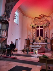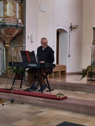 Mit einer durchdachten Liturgie, ruhigen Momenten der Besinnung und eindrucksvollen Impulsen wurde der Bogen gespannt zwischen dem biblischen Geschehen und dem Heute. Musikalisch wurde der Gottesdienst einfühlsam und zugleich kraftvoll begleitet: Ulrich Fischer an der Orgel verlieh der Liturgie Tiefe und Raum, während Pastoralreferent Walter Lang am Klavier mit neuen geistlichen Liedern moderne Klangfarben und spirituelle Impulse setzte. Die Mischung aus klassischer und zeitgenössischer Kirchenmusik eröffnete neue Zugänge zur Passion.