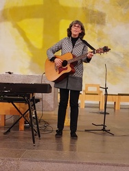 Mömbris-Schimborn. Über 90 Besucherinnern und Besucher kamen zum besonderen Abendgottesdienst im Kahlgrund in die neue Kirche in Schimborn, um mit dem Team der "Zeit für uns" und der Liedermacherin Stefanie Schwab aus Würzburg gemeinsam eine musikalische Adventsandacht zu erleben. Unter der Überschrift "MENSCH-Werdung" hatte die Liedermacherin ihre Lieder und Texte ausgewählt. Dabei standen Gedanken im Vordergrund, die anregten das Mensch-Sein Jesu Christi in den Blick zu nehmen. Sein Weg und seine Botschaft für die Menschen von heute wurden ihr konkret übersetzt in die Begegnung mit einem Obdachlosen und der Sehnsucht gerade heute nach Frieden unter den Menschen. Die Liedermacherin arbeitet ehrenamtlich in der Bahnhofsmission und bat aus diesem Anlass und aus den Begegnungen mit den Menschen dort um Spenden am Ende dieser besonderen Andacht. Durch die Teilnehmenden gingen so 600 € an die Bahnhofsmission in Würzburg.Pastoralreferent Walter Lang bedankte sich am Ende für ihr authentisches Zeugnis des gelebten Christseins in Liedern und Erfahrung. Die nächste "Zeit für uns" startet im neuen Jahr am 12.1.2025 wieder in der neuen Kirche in Mömbris-Schimborn. Alle Informationen unter www.zeitfueruns.de